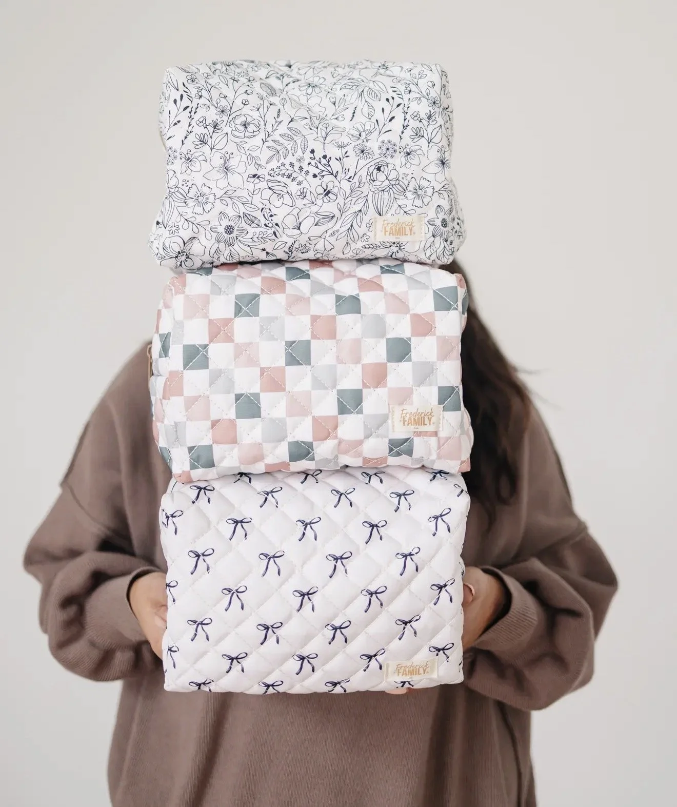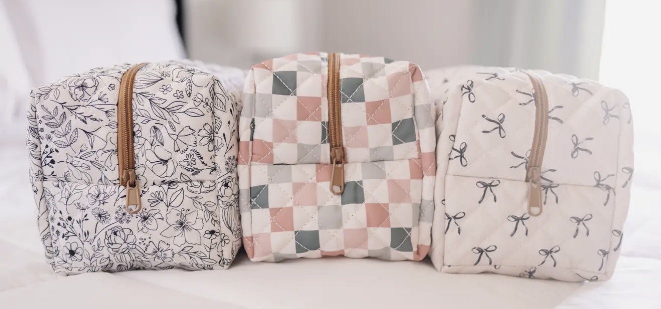 Shop › Makeup Bag Image 1 of 2 Image 2 of 2 Makeup Bag $25.00 Quilted carryall pouch-large organizer makeup bag Makeup bag-large: Black Bow Boho Checker Black Floral Add To Cart Added! Quilted carryall pouch-large organizer makeup bag